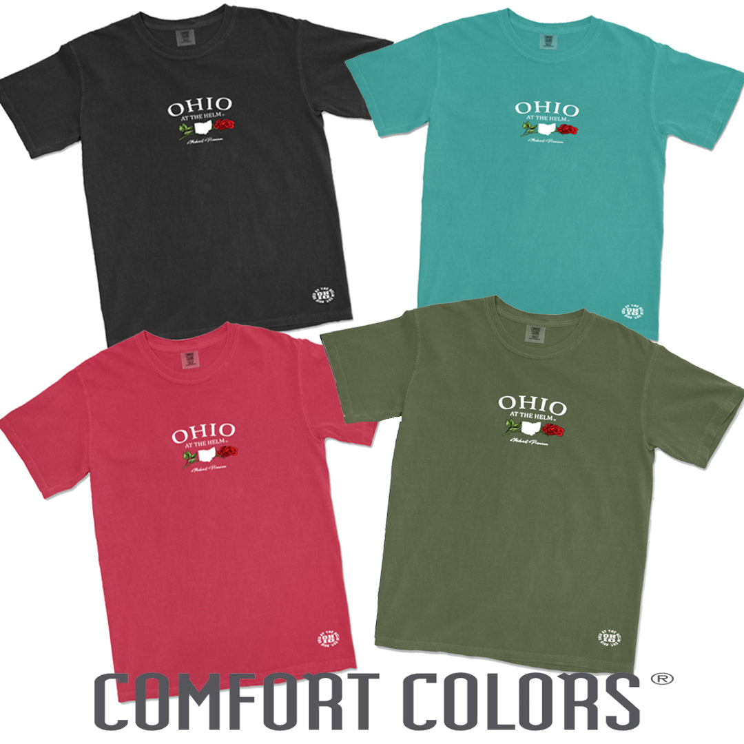 Ohio at the Helm Comfort Colors t-shirt - the perfect addition to any wardrobe! Made from premium quality 100% ring-spun cotton, this t-shirt is soft, breathable and incredibly comfortable to wear all day long.