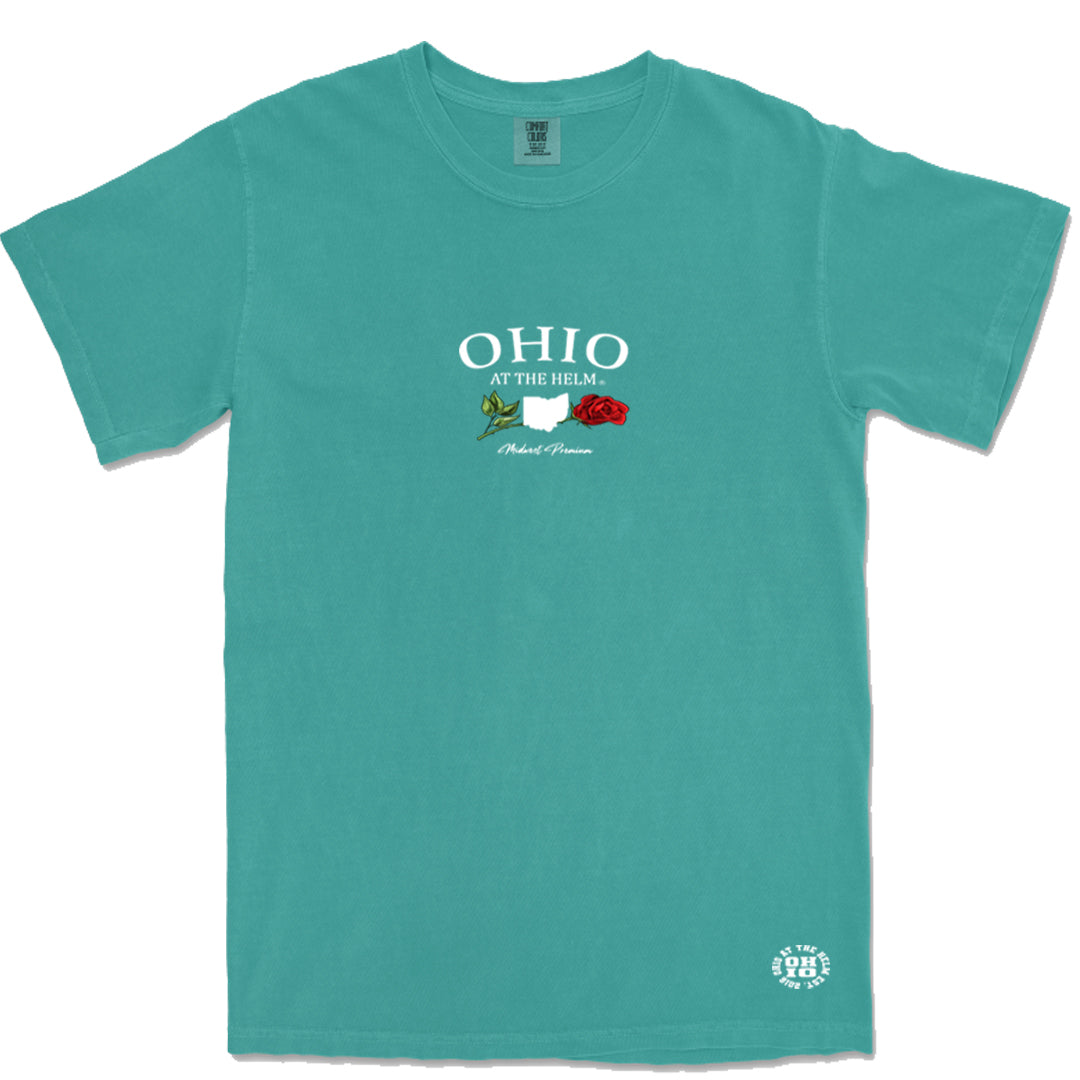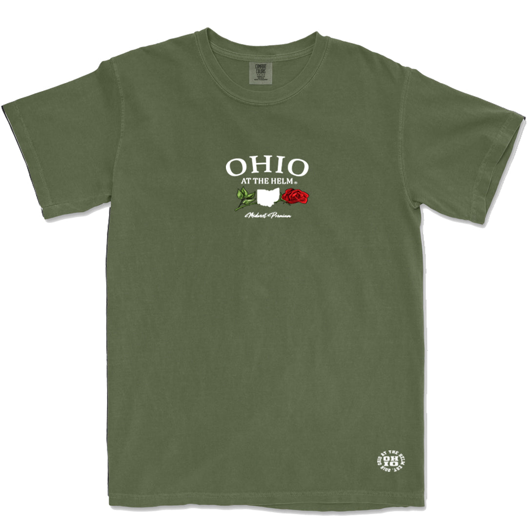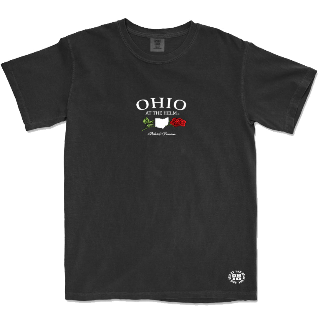 The shirt features the signature Ohio at the Helm logo printed on the chest, showcasing your love for the Buckeye state in a stylish and understated way.